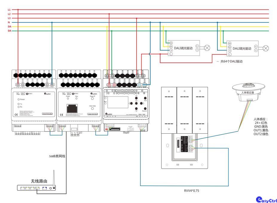 ■ 内置DALI电源,具有单条DALI总线,最多支持64个DALI驱动的LED灯