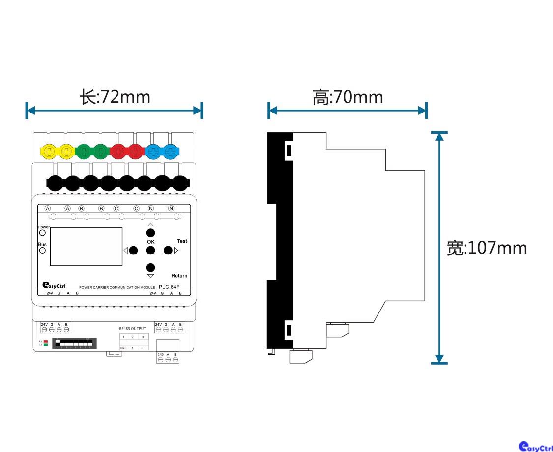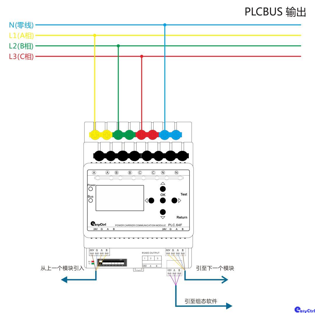 系统执行单元,安装于配电箱内,上行RS485通信,下行电力线载波通信,支持设备调光调色、开关/分组/场景控制及故障监测。免布线、低成本、易维护,适用于商场、酒店、展馆等智能照明系统。
